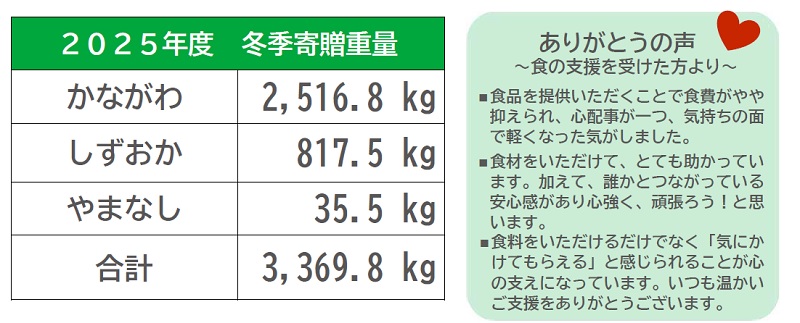 ■冬のフードドライブで約3.3トンの食品を寄贈