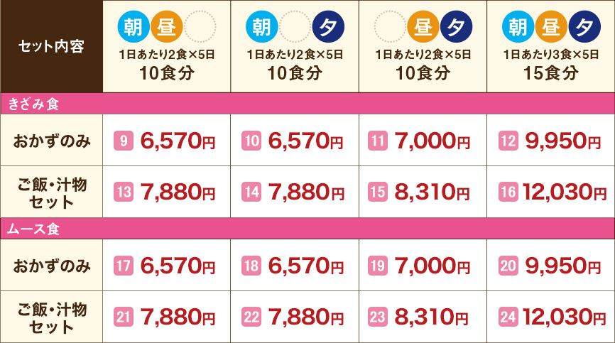 ※ご注文は上記セット単位でのお申し込みとなります。 ※価格はすべて税込です。