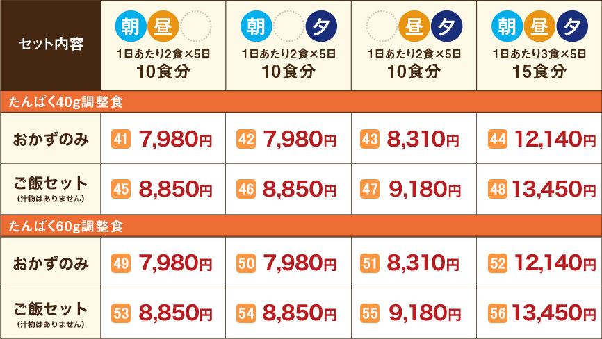 ※たんぱく調整食は普通ごはんで栄養成分を計算しています(低たんぱくごはんは必要ありません)。