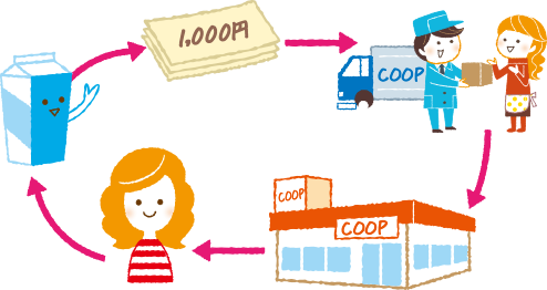 生協は、消費者がお金を出し合い、自分たちのくらしをいっそう良くするために事業・活動を行う非営利の消費者団体です。「出資」して組合員になることで、商品やサービスを「利用」できます。また生協の「運営」にも参加できます。「運営」と聞くと難しいと感じるかもしれませんが、お店や宅配などを利用して「こうなったらいいのにな」と思ったことをユーコープに伝えるのも運営参加の一つです。皆さんからいただいたご意見やご要望は、生協の運営や商品作りに生かされます。