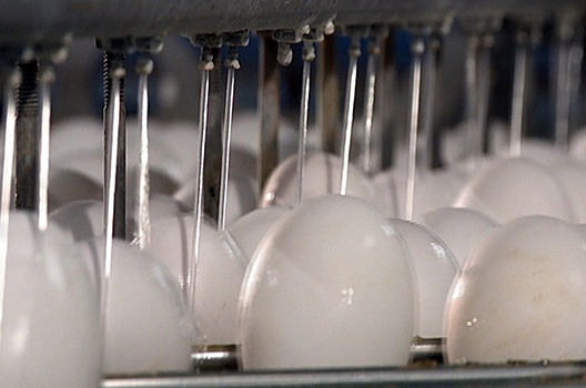 産みたての卵は集荷後にオゾン水や次亜塩素酸水で洗浄殺菌し、さまざまな機械や人の手および目で確認後、パック詰めをします。
