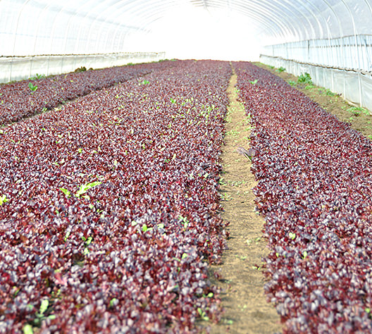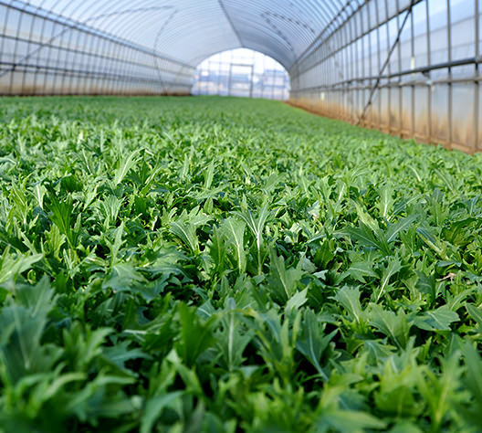 (茨城県つくば市)は、複数の農場で主にベビーリーフを育てています。土づくりには特に力を入れ、化学合成農薬や化学肥料を使わない有機農法でベビーリーフを栽培しています。