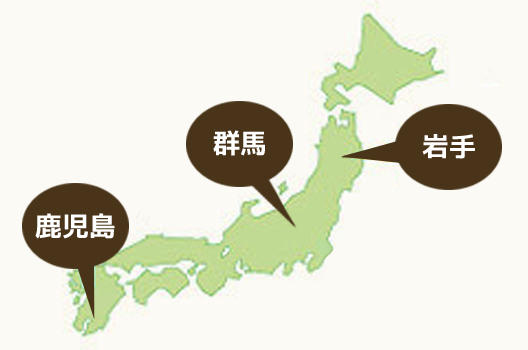茶美豚は鹿児島県49農場、岩手県2農場、群馬県1農場で生産されています。どの生産者も毎日一頭一頭の鳴き声・顔つき・動きなどを見て、いつもと様子が違う豚はいないか注意をはらい、生産履歴などをこまめに記録しています。また調子の悪い豚は違う豚房に移し、適切な治療を行うため個別に管理します。毎日体調をチェックし愛情込めて育てることが、おいしい豚肉をつくる最大のポイントです。