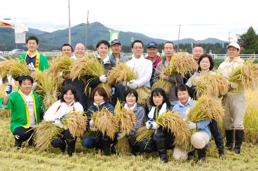 岩手県花巻市内の茶美豚の飼料用米の田んぼでは、ユーコープの組合員や職員・パート職員が毎年5月に田植えを、10月に稲刈りを行っています。