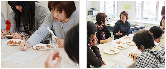 2回にわたり、組合員によるウインナーの食べ比べを行い、参加者のみなさんから「熟成あらびきポークウインナーは味がとてもよい」「サイズが小さくて物足りない、お弁当にはいいけれど」「お弁当にはもっと安い商品を気軽に使いたい」などの声をいただきました。