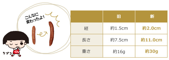 そこで思い切って1本あたりのサイズを約2倍にボリュームアップ。 スモークも強めて、パリッ!とした食感と、ジューシーな肉感をいっそう引き立たせ、大人の舌を満足させる味わいに仕上げました。このたびユーコープセレクションに仲間入り。夕食のメインやお酒のつまみにどうぞ!