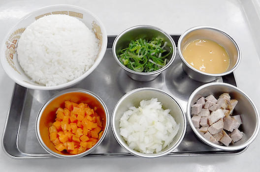 具材には国産豚肉の焼豚と国産野菜(玉ねぎ・にんじん・青ねぎ)・卵を使っています。