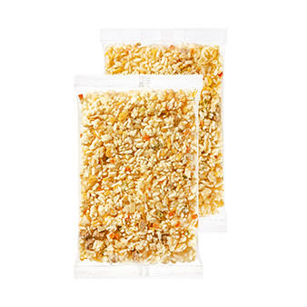 こだわりの指定産地米のおいしさを味わえるよう、素材の味を生かす塩味ベースの味付けにしています。隠し味としてじっくり炒めた玉ねぎ・ねぎを入れることで香ばしさや甘み、コクを加えました。
