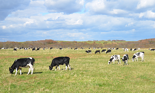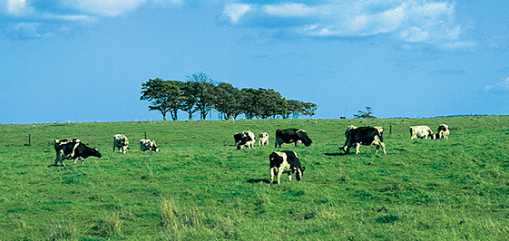 北海道の根室と釧路は、あわせて根釧地区と呼ばれています。乳牛は暑さが苦手なので、真夏でも最高気温が20℃程度の冷涼な気候が、成育に大変適しています。また広い牧草地で放牧できることから、乳牛はのびのびと過ごしています。