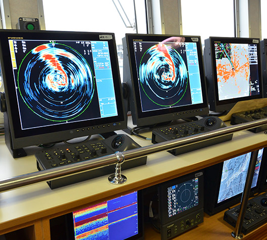 魚群探知の最新の機器を搭載した船内