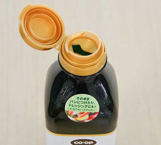 今回は遮光性のあるペットボトルを採用。注ぎ口も油切れの良いものにでき、使い勝手が向上しました。