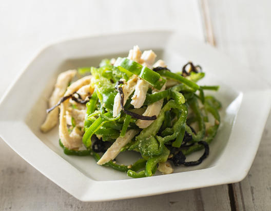 サラダチキンとピーマンの塩昆布あえ