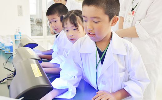 見学では、実際の機械を触ったり実験をすることができます。そのうちの1つが手洗い体験。特別な液体を使って、手をきちんと洗えているか、バイ菌がしっかり取れているかを体験できます。また、実際に検査をしている様子を見ることもできます。毎年夏休みに実施する、子どもたちが食の安全を学ぶイベントはとても好評ですよ。