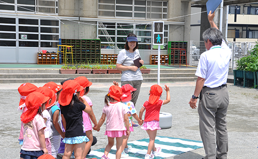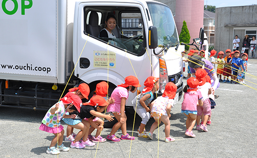ユーコープでは、地域の交通事故をなくすために、幼稚園や保育園などで「交通安全教室」を開催しています。